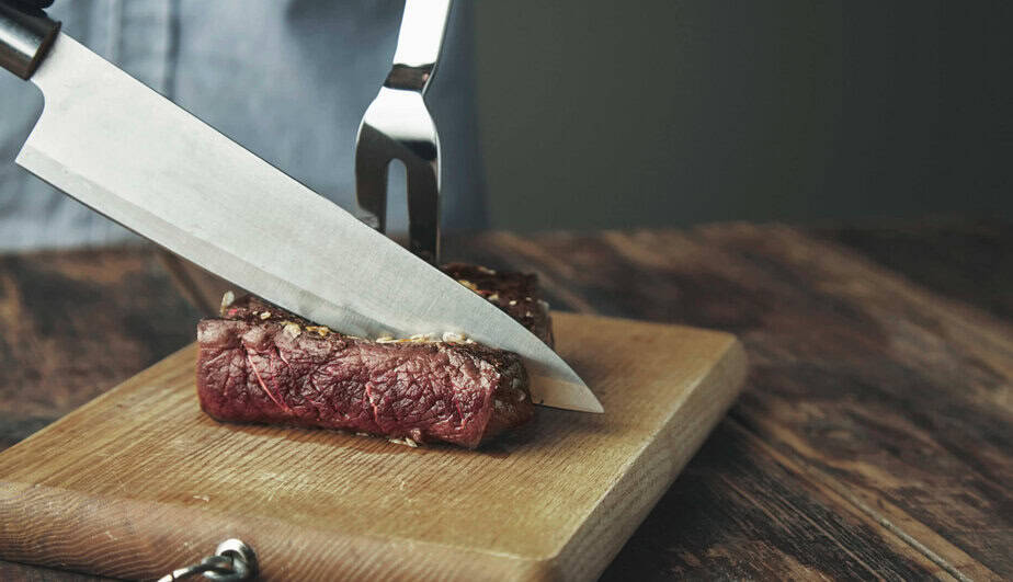 Na maso je nejlepší kuchařský nůž nebo plátkovací nůž s hladkým ostřím z nerezové nebo damaškové oceli. Pro filetování ryb vyberte speciální filetovací nůž.